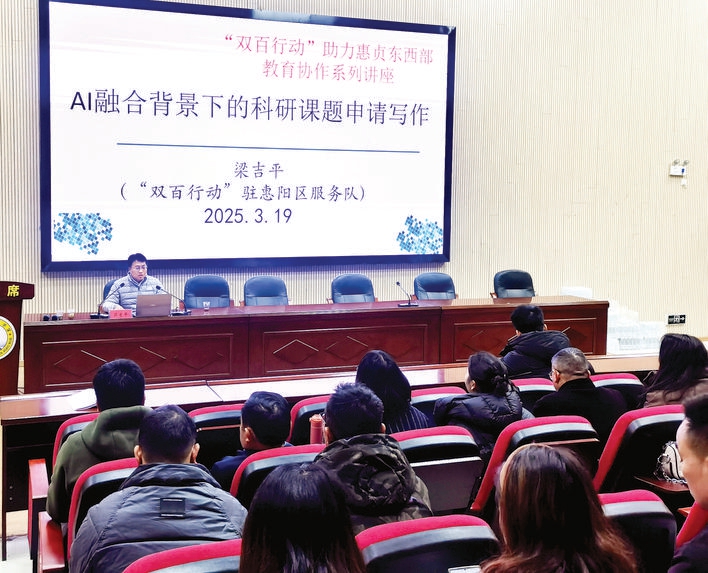 惠陽和貞豐聯合舉辦教師素質能力提升培訓班,惠陽區精心挑選一批經驗豐富、專業素養深厚、教學成果顯著的專家名師團隊進行授課,授課內容涵蓋心理健康、德育工作、課題研究、教學教研等,分享了“校家社協同育人4+3+2模式”“AI賦能科研課題申報”等經驗做法,助力貞豐教師提升專業能力。