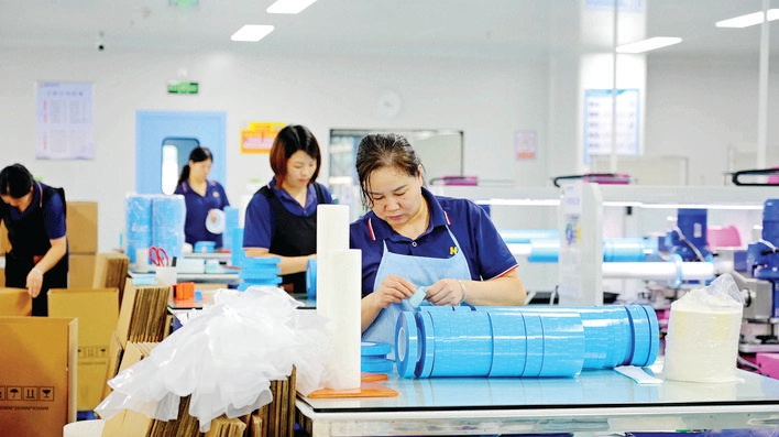 龍門工業(yè)園一功能膜生產(chǎn)企業(yè)內(nèi),工人正在有條不紊忙生產(chǎn)。 惠州日報(bào)記者黃宇翔 通訊員龍融心 攝